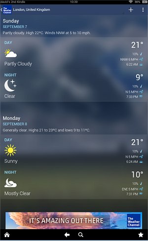 Forecasts: Choose hourly, 36-hour, 10-day and weekend forecasts in Celsius or Fahrenheit.
