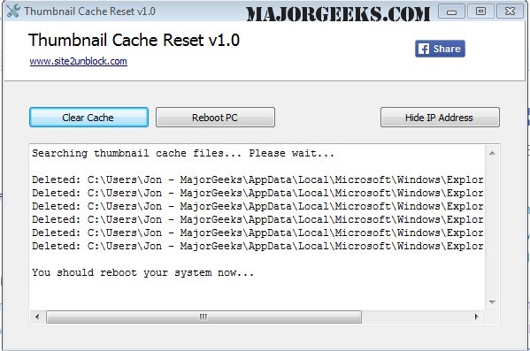 Thumbnail Cache Reset is a quick and easy utility that permits you to clear the Windows thumbnail cache with minimal steps.
