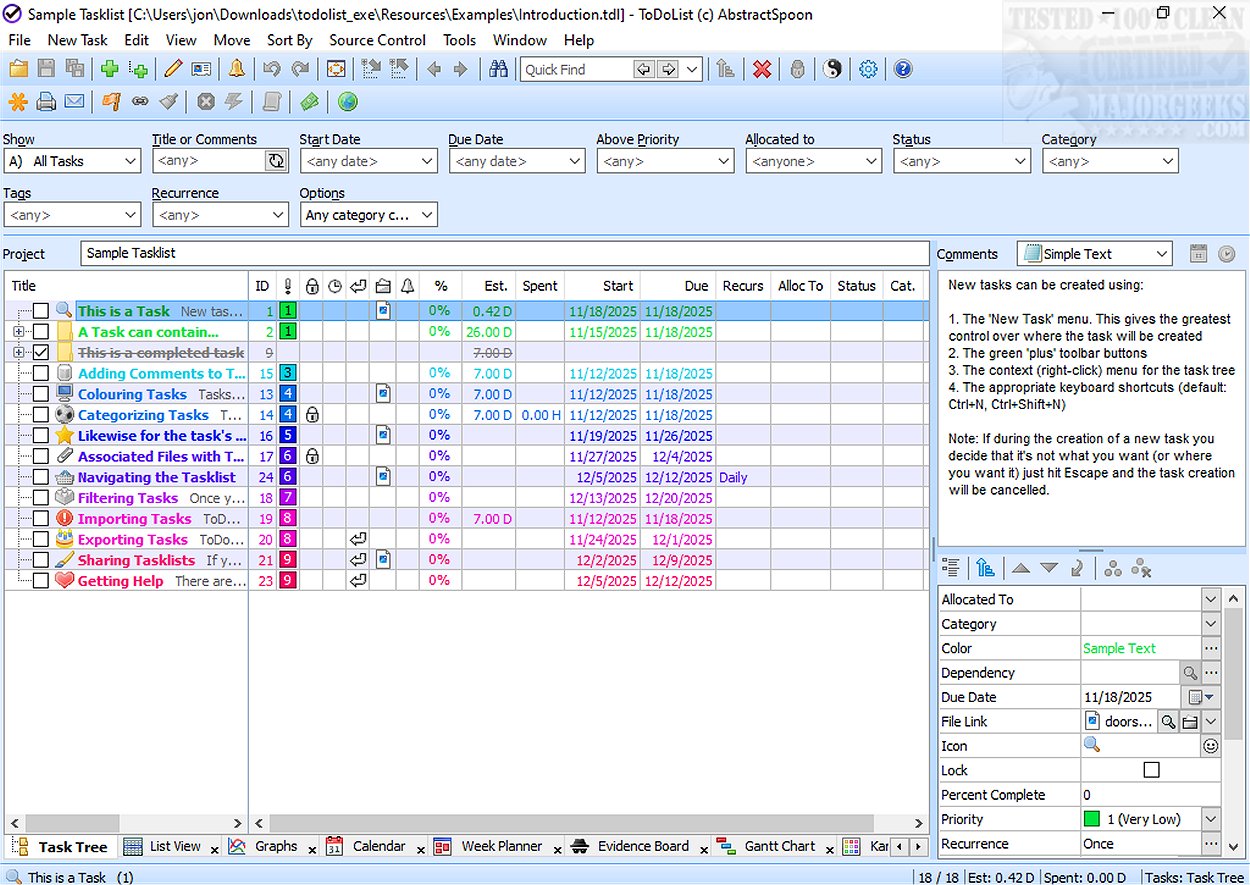 ToDoList is a versatile task management tool that allows you to break down complex projects into manageable parts by repeatedly subdividing them, creating a hierarchy of simpler subtasks. This ability makes it an ideal solution for IT-related projects and for implementing the Getting Things Done (GTD) methodology.