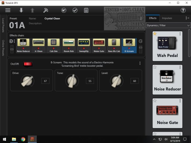 ToneLib GFX is a multi-platform collection of free guitar amps, speaker cabinets, and effects, allowing for simplified use during recording sessions or while jamming.
