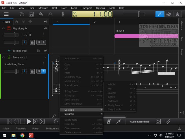 ToneLib JAM provides a free comprehensive platform for creating, editing, printing, and listening to tablature and sheet music for guitar and other fretted instruments.