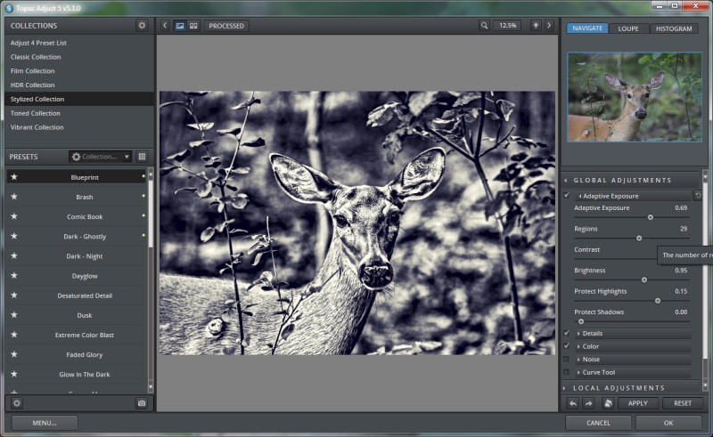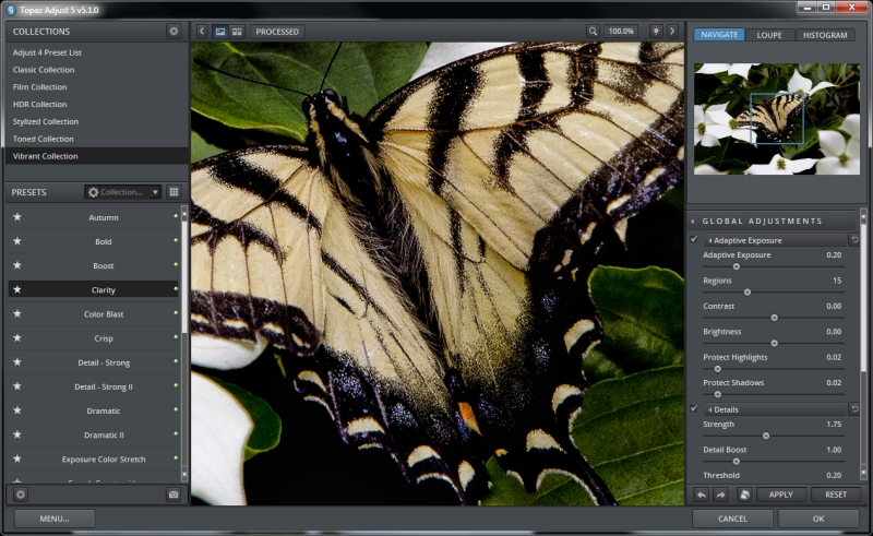 There is a number of nifty presets to choose from ranging from soft tones to grunge to the latest HDR look. These presets are awesome time savers and make great starting points but if you are not 100% happy, simply use the slider to the right tweak the programs detail enhancement, adaptive exposure and adaptive color technology produce the image you want exactly.