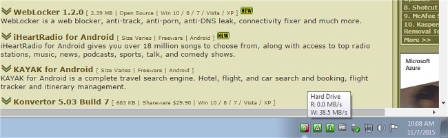 ● Hard Drive activity (read or write) with current speed in a tooltip