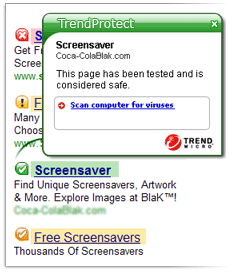 TrendProtect is a FREE browser plug-in that helps you avoid Web pages with unwanted content and hidden threats. TrendProtect rates the current page and pages listed in Google, MSN, and Yahoo search results. You can use the rating to decide if you want to visit or avoid a given Web page. To rate Web pages, TrendProtect refers to an extensive database that covers the following information for billions of Web pages: