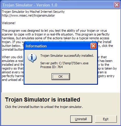 For years you have been able to test your virus scanner with the harmless "Eicar" test file. Using "Trojan Simulator" you can now test your trojan scanner in the same manner, using a harmless demonstration trojan.