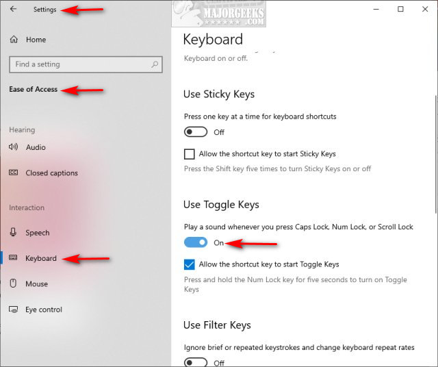 Screenshot for Turn Toggle Key Sounds on or off in Windows 10 & 11