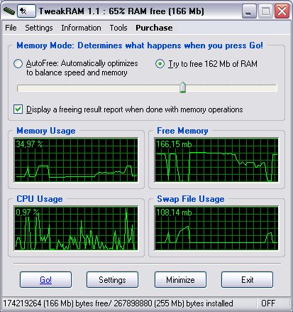 Thus the program is not running any more, but some memory can't be used by other programs. TweakRAM will find such memory leaks and will flush them to swap file, thus will increase the size of free RAM.