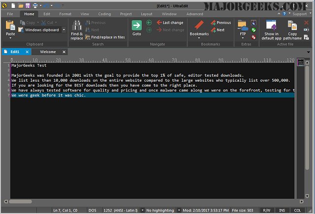 UltraEdit is a powerful disk-based text editor, programmer's editor, and hex editor that is used to edit HTML, PHP, javascript, Perl, C/C++, and a multitude of other coding/programming languages.