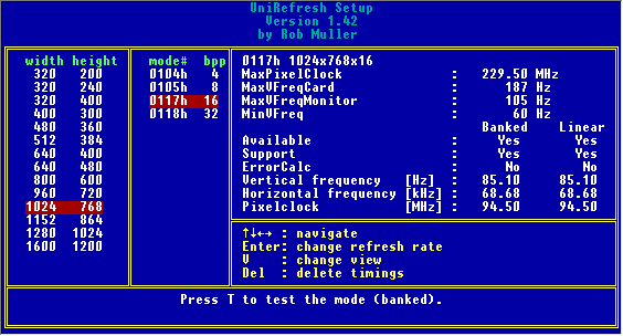 UniRefresh (shareware) is a universal dos refresh rate utility using VESA VBE 3.0.