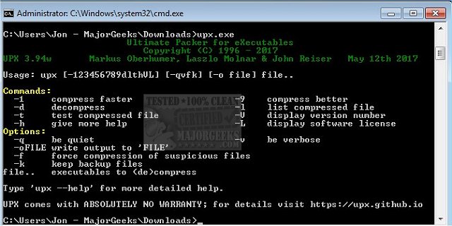 You have access to significant compression ratios that will permit distribution size reductions that rival similar tools and quick decompression times. There is no noticeable memory overhead due to UPXs in-place decompression. It allows you to list, test, and unpack your executables. Additionally, you are given checksums for both the compressed and uncompressed files; this is maintained internally.