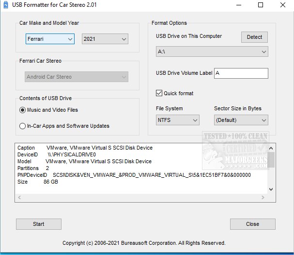 USB Formatter for Car Stereo provides a built-in database for determining which file system is most suitable for your car's stereo.