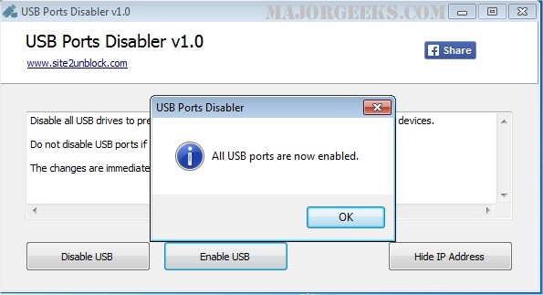 USB Ports Disabler is a straightforward USB tool that easily disables/enables all USB drives, it does so by disabling the USBSTOR service so Windows is unable to detect and identify USB devices connected to the computer.