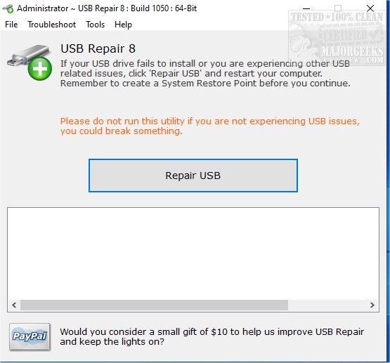 It is recommended that you create a restore point before running USB Repair - an option to do so is provided in-app.