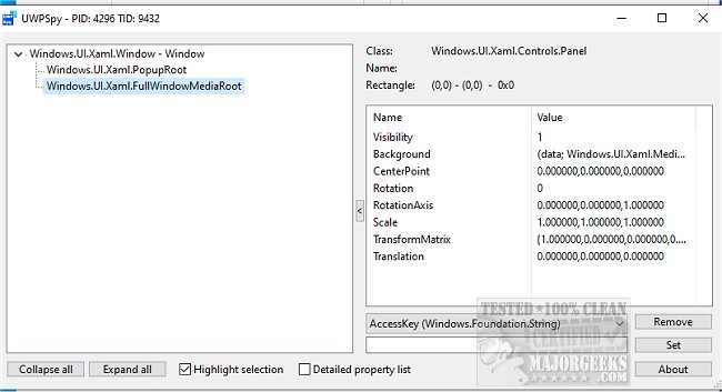 UWPSpy enables users to observe how changes affect the structure and functionality of their UWP app. It's beneficial for helping with UI design tasks during app development. When you select specific properties, the linked elements will be highlighted, and any changes will update in real time.