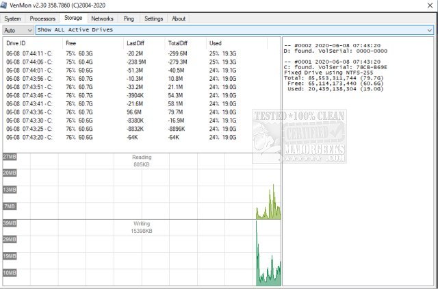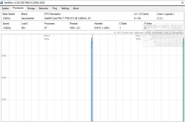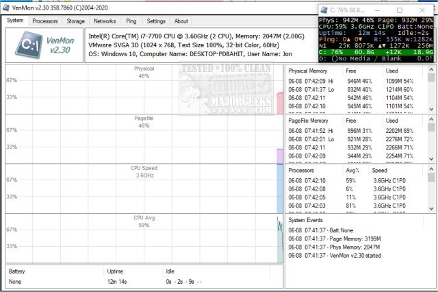 It can monitor system memory, processor, battery life, uptime, idle time, network traffic, and drives. Venmon utilizes minimal memory and processing power while displaying the compiled statistics.