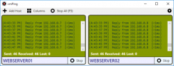 Numerous host monitors can be added and removed, and each monitor dynamically resizes with the application window. Color-coding allows you to tell at a glance the status of each host. In addition to standard ICMP pings, you can also perform a TCP 'port ping,' where the application continuously connects to a specified port and displays whether the port is open. A quick traceroute utility and a basic packet generator/stress tester are also included.