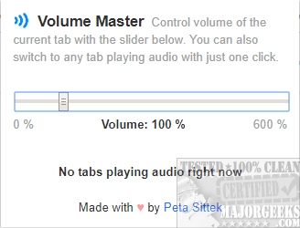 To use Volume Master for Chrome, click on the icon, and you are shown if there's any audio playing. From there, you can slide the volume bar from 0-600%.