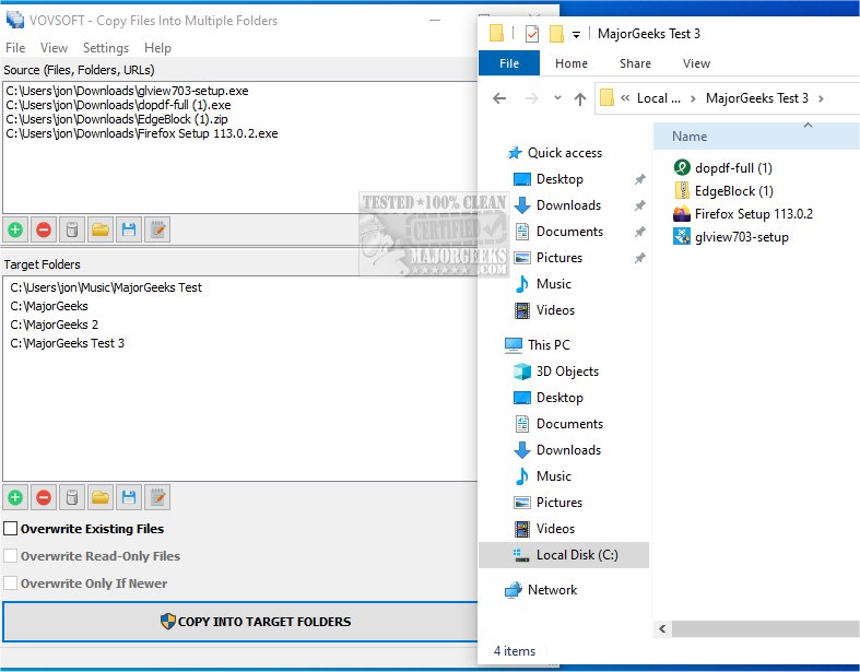 Copy Files Into Multiple Folders by VOVSOFT provides an efficient way to copy files to multiple destinations. This can be done with or without overwriting existing content.