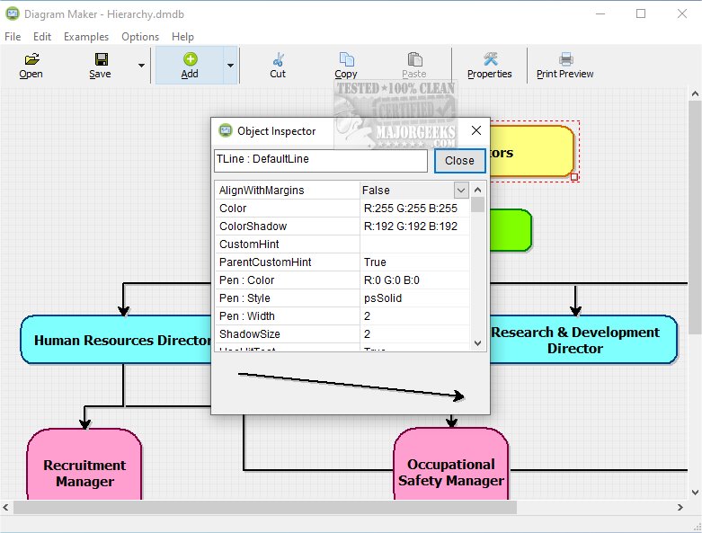 VOVSOFT Diagram Maker software offers a wide range of sample charts that you can use to conduct in-depth analysis and experimentation. You can rotate elements, add new items, adjust spacing, alignment, and dimensions, and bring some objects to the front while sending others to the back. Additionally, you can define the default parameters for the lines and solid colors used in your designs.