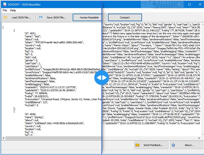 With VOVSOFT JSON Beautifier, you can load a JSON file and preview the text. Turn the text into a human-readable form with a simple click. VOVSOFT JSON Beautifier formats the continued data based on the curly brackets. It has a simple, job-driven UI. Load, Save, Make Human Readable, and Compact are your options - it doesn't get easier.