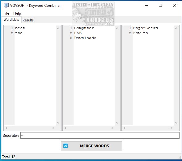VOVSOFT Keyword Combiner is the perfect solution for digital marketers who want to optimize their Google AdWords campaigns or find the perfect domain name for their online venture. This handy tool is designed for speed and simplicity, making it effortless to mix words and create unique and impactful keyword combinations.