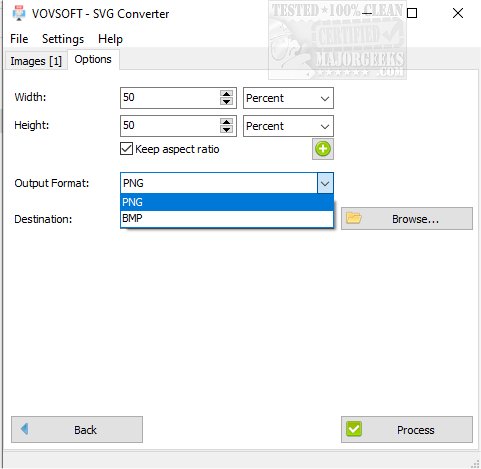 VOVSOFT SVG Converter is designed to quickly convert scalable vector images to PNG or BMP. The conversion process used by VOVSOFT SVG Converter maintains transparency enabling you to scale lossless to any specific size.