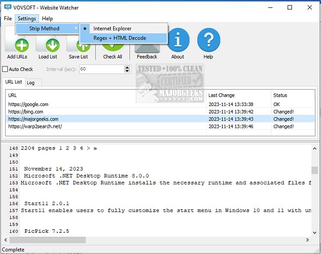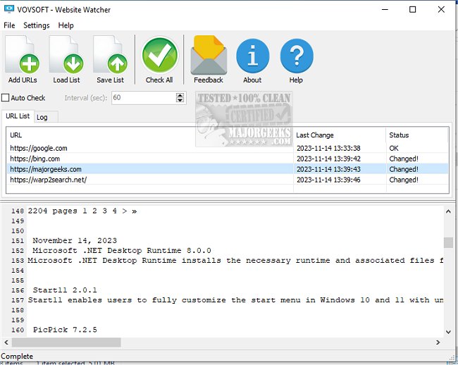 With VOVSOFT Website Watcher, you can monitor your preferred websites and receive timely notifications for any changes. You can schedule the tool to monitor the websites regularly, making it easy to stay updated on any modifications. VOVSOFT Website Watcher simplifies the process, making tracking changes on your favorite sites hassle-free. In the free version, you are required to perform the site update check manually.