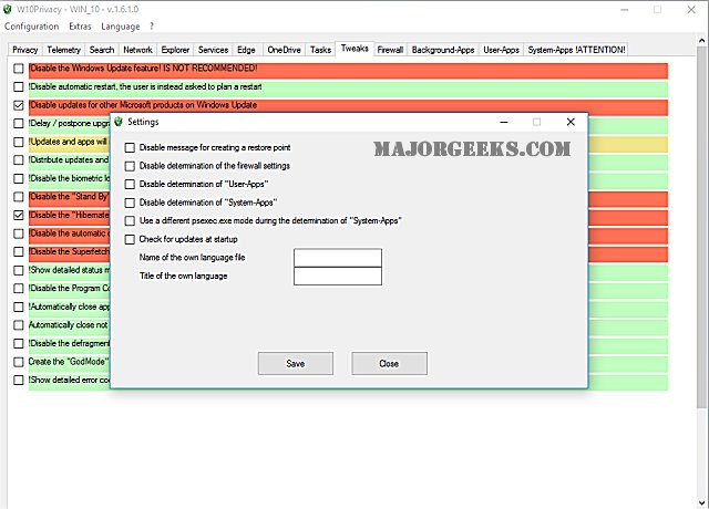 W10Privacy can display typical Windows 10 security settings that can be activated and deactivated within the program. It also allows importing and exporting your changes. Video tutorial available.