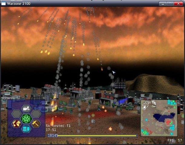 Warzone 2100 is a remake of the 1999 classic game. In it, you command the forces of "The Project," fighting to rebuild the world after nuclear missiles have almost destroyed humankind.