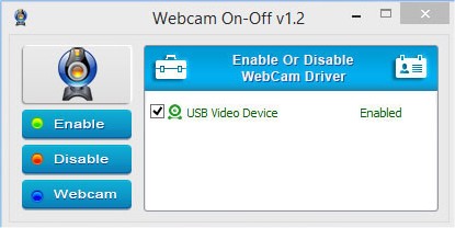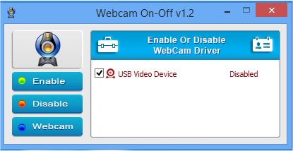 WebCam On-Off will assist in the protection of your privacy by easily disabling or enabling your webcam device.