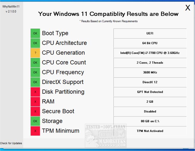 WhyNotWin11 lets you know if your machine is Windows 11 compatible by running a small script. PortableApps version is also available.