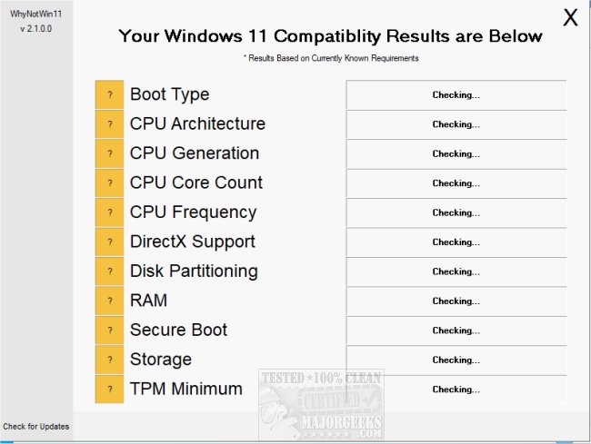 WhyNotWin11 Portable is a simple way to find out if your machine is ready for Windows 11. We have a write-up that goes over the various reasons why your Windows 10 machine may not be compatible.