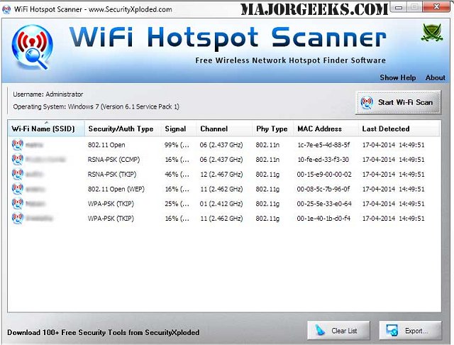 WiFi Hotspot Scanner scans for and displays details on any wireless hotspot device that is in your vicinity.