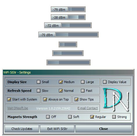 WiFi SiStr is a very small application that keeps your Wi-Fi signal strength always visible