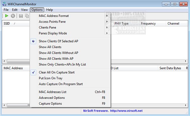 It also allows you to view the information about Wi-Fi clients that are not connected to any access points, including the list of SSIDs (network names) that they are trying to connect.