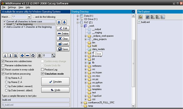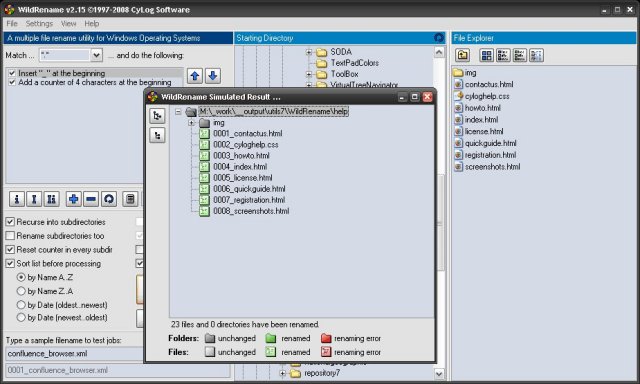 WildRename utilizes the file list and folder tree controls and includes an option for saving of renaming jobs feature as well as HTML help.