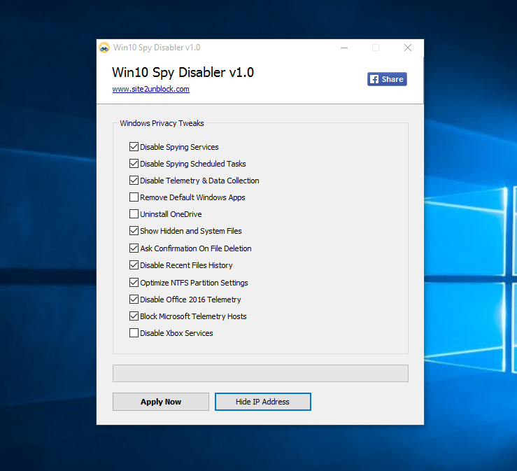 Win10 Spy Disabler helps you to disable Windows services and programs used to track your activity and to collect data about your usage, disable telemetry and data collection.