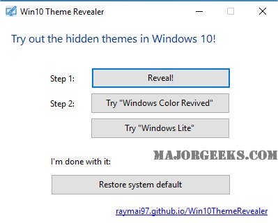 Win10 Theme Revealer helps you discover hidden themes in Windows 10 and restore colored title bars safely and easily.