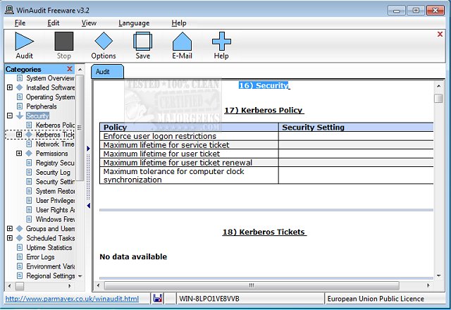 WinAudit performs PC audits and inventory of software, licenses, security configuration, hardware, network settings, etc.