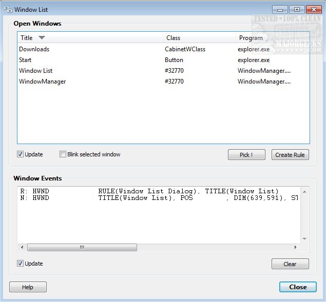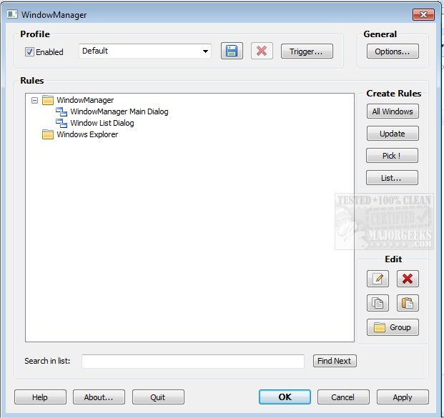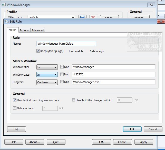 WindowManager makes sure your windows are placed where you want them every time you open them and even allows you to lock the window's position and size to always open at the same spot, no matter where you move it. The window handling is fully customizable, and you can set up special rules for your favorite or most frequently used windows. You can also make WindowManager send keystrokes or mouse clicks to a program when its window is opened, run additional programs, and other advanced actions. With WindowManager, you can also minimize most windows to the system tray.