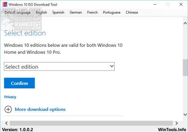 Essentially, this web interface takes you to the Microsoft page to find the ISO you need. It can also locate the latest Windows 10 disk image in English, Spanish, German, French, Portuguese, and Chinese.