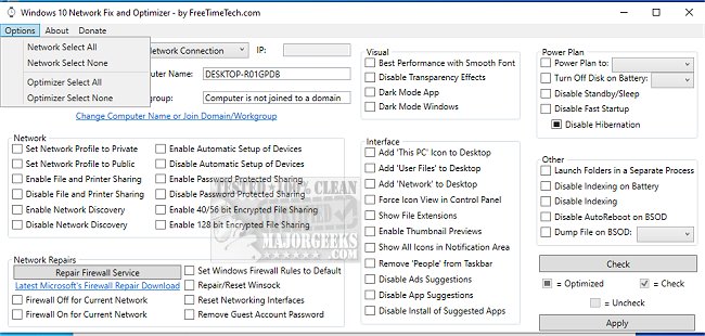 Windows 10 Network Fix and Optimizer Utility is a tool that can help you repair and optimize your Windows 10 network settings easily. It comes displayed from a user-friendly interface that allows you to select various options from the "Options" menu without wasting time checking each one manually.