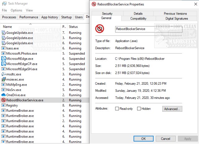 Windows 10 Reboot Blocker is a simple way to stop annoying reboots automatically. Keep in mind that with this app, there is no UI provided. If you would like to double-check that it is currently running on your machine, you will need to do so through the Task Manager.