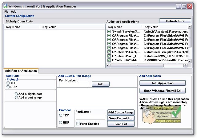 Windows Firewall Ports & Applications Manager is a free tool that can add a single port, a range of ports, and applications.