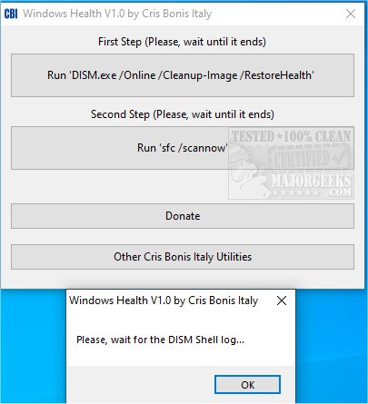When run, you are greeted with a popup that goes over the process, x out of this, and the main interface is displayed. Run DISM.exe /Online /Cleanup-image /Restorehealth to run the DISM command that scans for corruption and then repairs those issues -wait until it finishes. Then run SFC /scannow. As with any app that modifies system files, etc., it is recommended to create a restore point just in case there is an issue.
