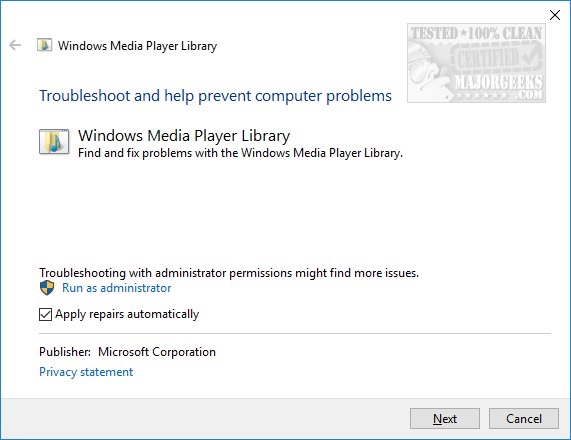 For more info on using these troubleshooters and other fixes for Windows Media Player problems - How to Troubleshoot Windows Media Player Issues.