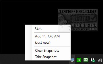 Right-click on the system tray icon to see all saved snapshots, which are done every 30 minutes. You can hover over any saved snapshot to see what and where any Windows positions were saved.
