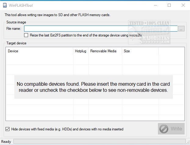 WinFLASHTool comes displayed from a simple UI for efficiently performing its task. It supports multi-partition images and cards correctly and allows previewing erased partitions before overwriting a card. WinFLASHTool also permits partitions to be automatically resized to fit the entire storage device.