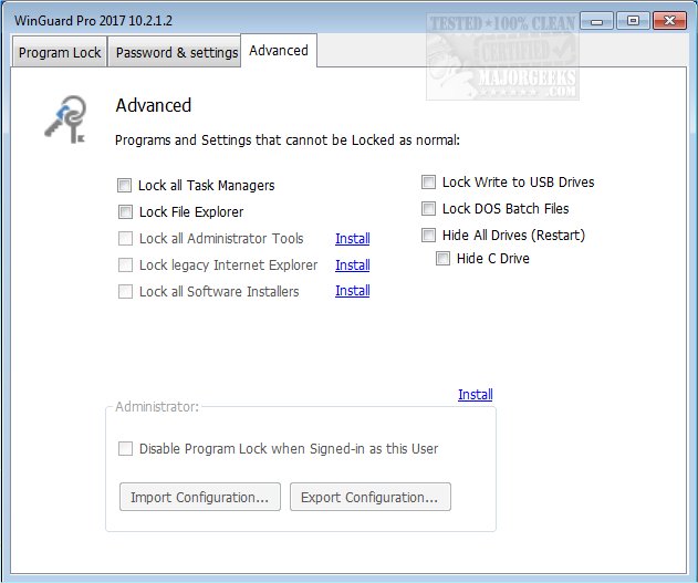 WinGuard Pro secures your computer by password protecting your Windows applications, programs, and locking EXE files.
