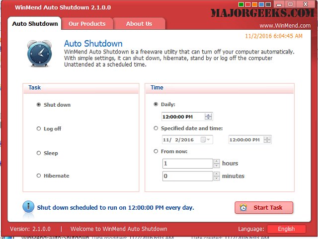WinMend Auto Shutdown is a freeware utility that can turn off your computer automatically.